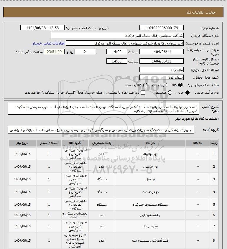 نام دستگاه خریدار:شرکت سهامی زغال سنگ البرز مرکزی