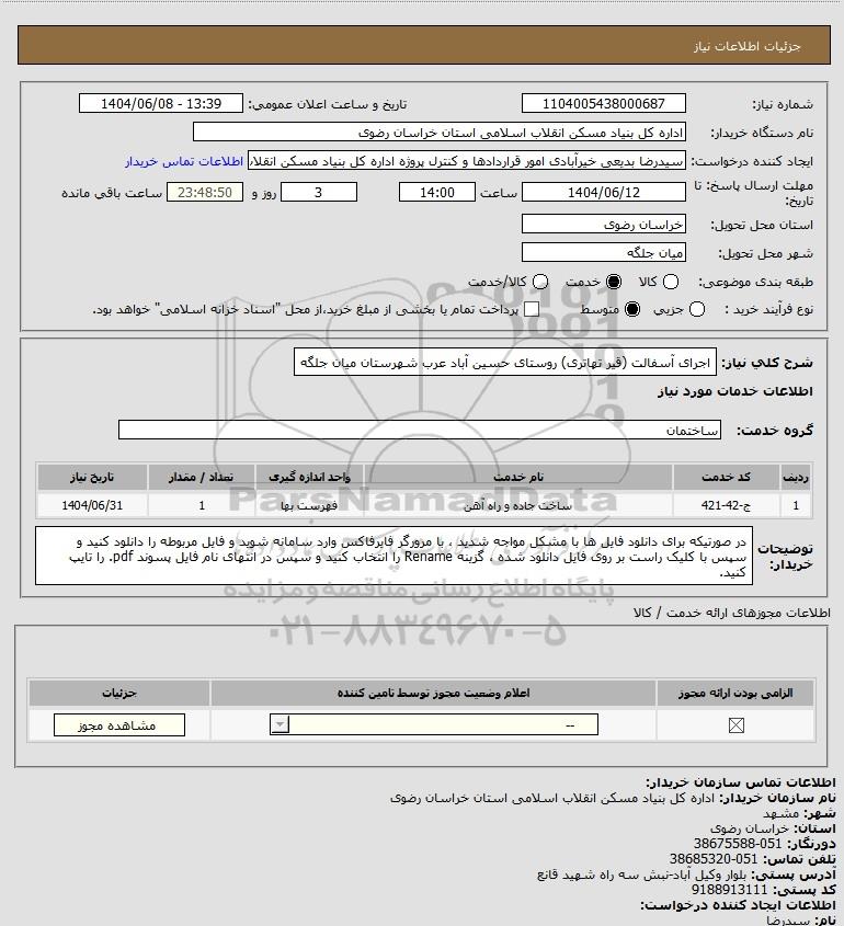 نام دستگاه خریدار:اداره کل بنیاد مسکن انقلاب اسلامی استان خراسان رضوی