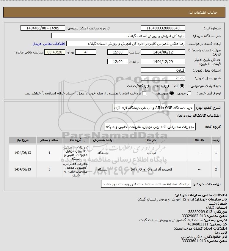 نام دستگاه خریدار:اداره کل اموزش و پرورش استان گیلان