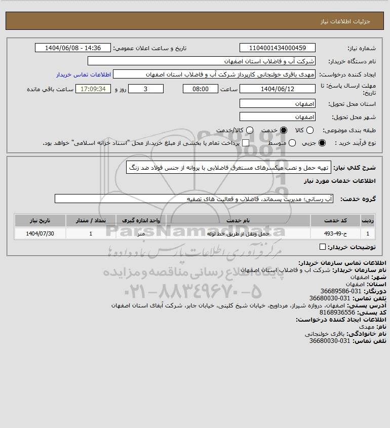 نام دستگاه خریدار:شرکت آب و فاضلاب استان اصفهان