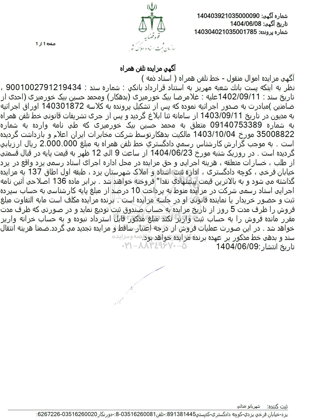 شماره آگهی 140403921035000090