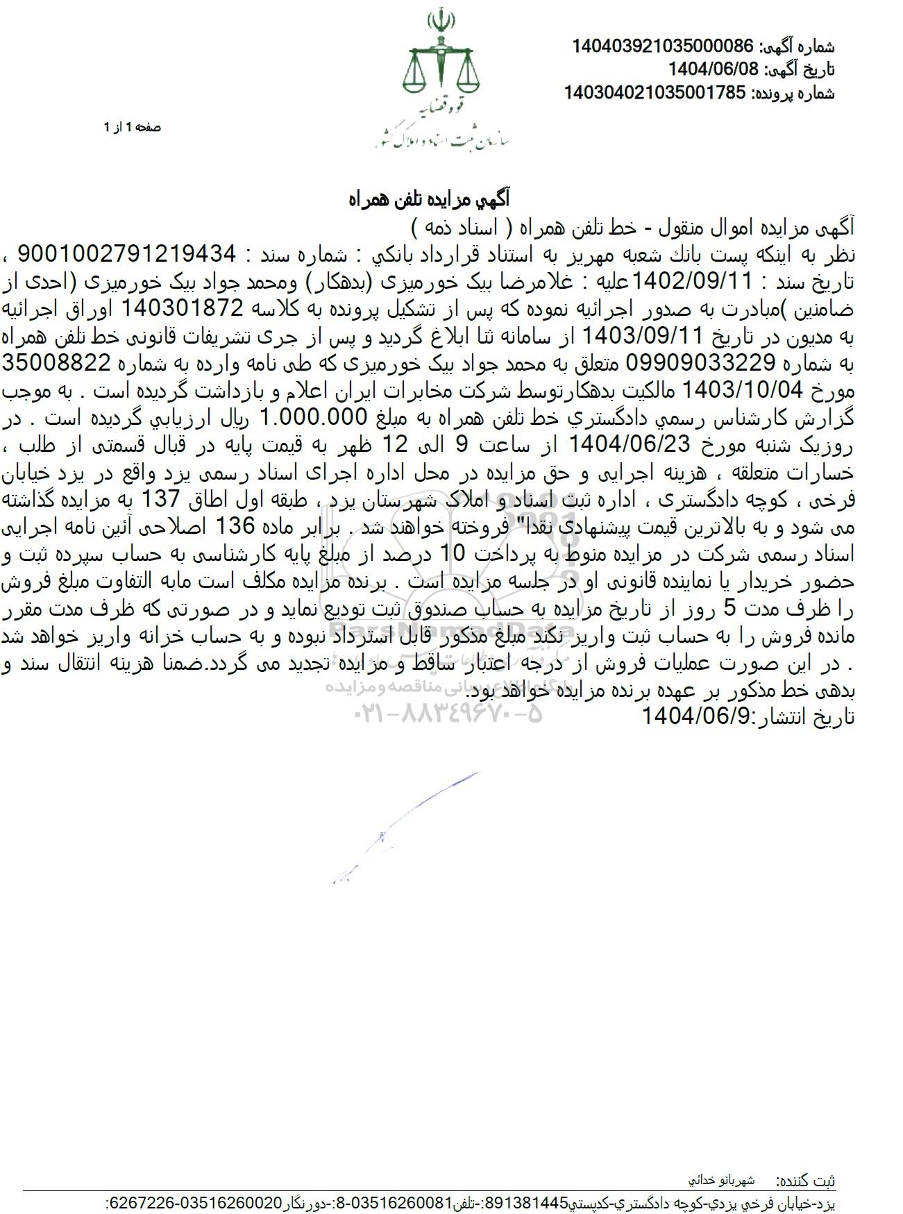 مزایده عمومی مزایده خط تلفن همراه برگزار میگردد. از کلیه افراد متخصص و شرکتهای واجد شرایط دعوت به عمل میآید تا در این مزایده با کد خبرگزاری پارس نماد : 9475839 شرکت نمایند تاریخ شروع مزایده : 1404/06/08 مهلت شرکت در مزایده: تا پایان روز 1404/06/23 مکان برگزاری اموال واگذاری استانهای یزد و دستهبندیهای مربوط به این حراجی متفرقه, واگذاری و فروش سیم کارت میباشد.