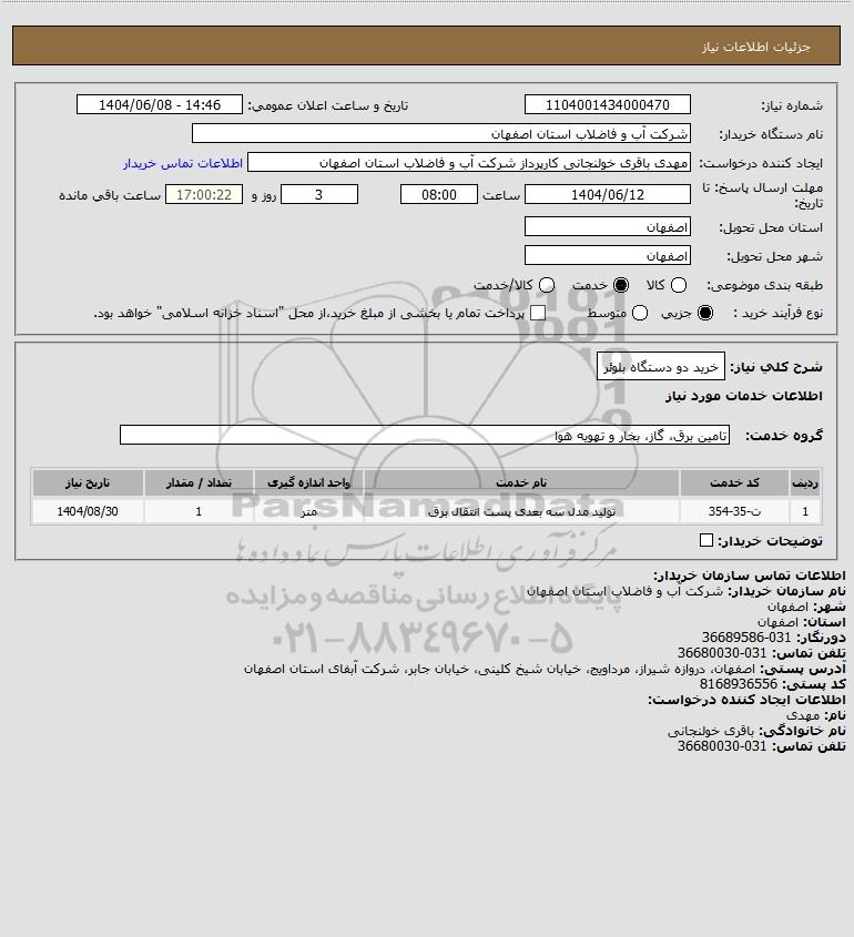 نام دستگاه خریدار:شرکت آب و فاضلاب استان اصفهان