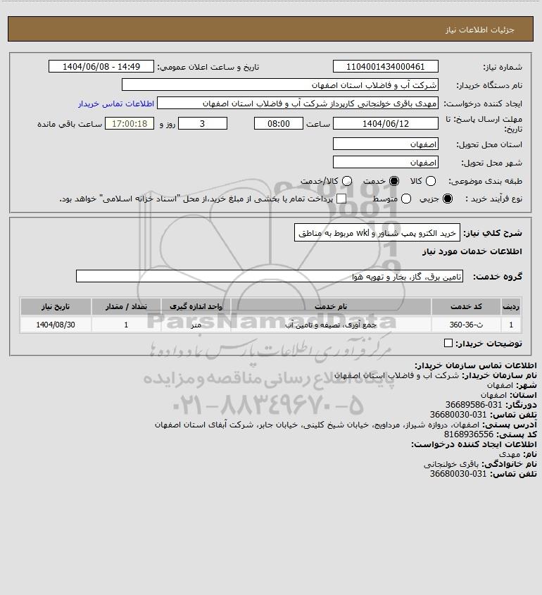 شرح کلی نیاز: خرید الکترو پمپ شناور و wkl مربوط به مناطق