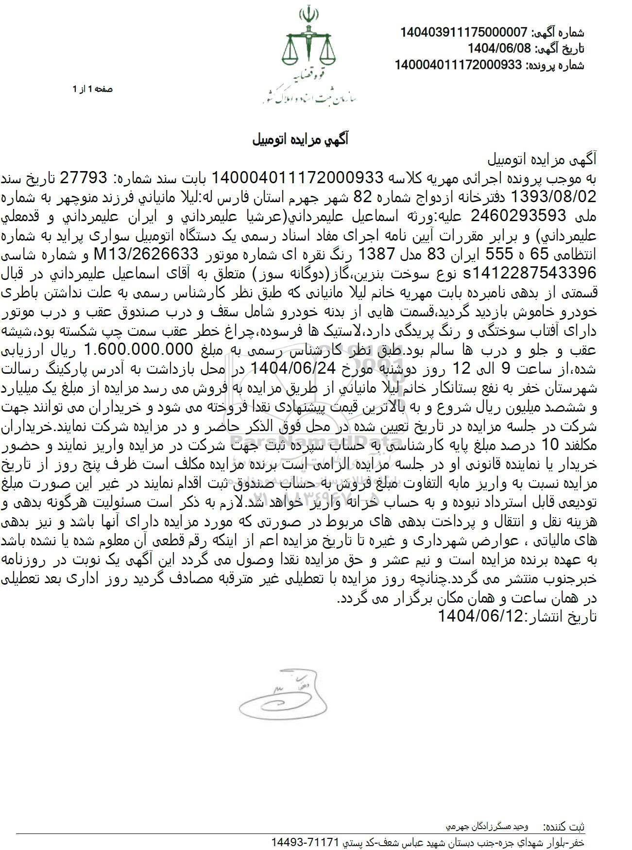 شماره آگهی 140403911175000007