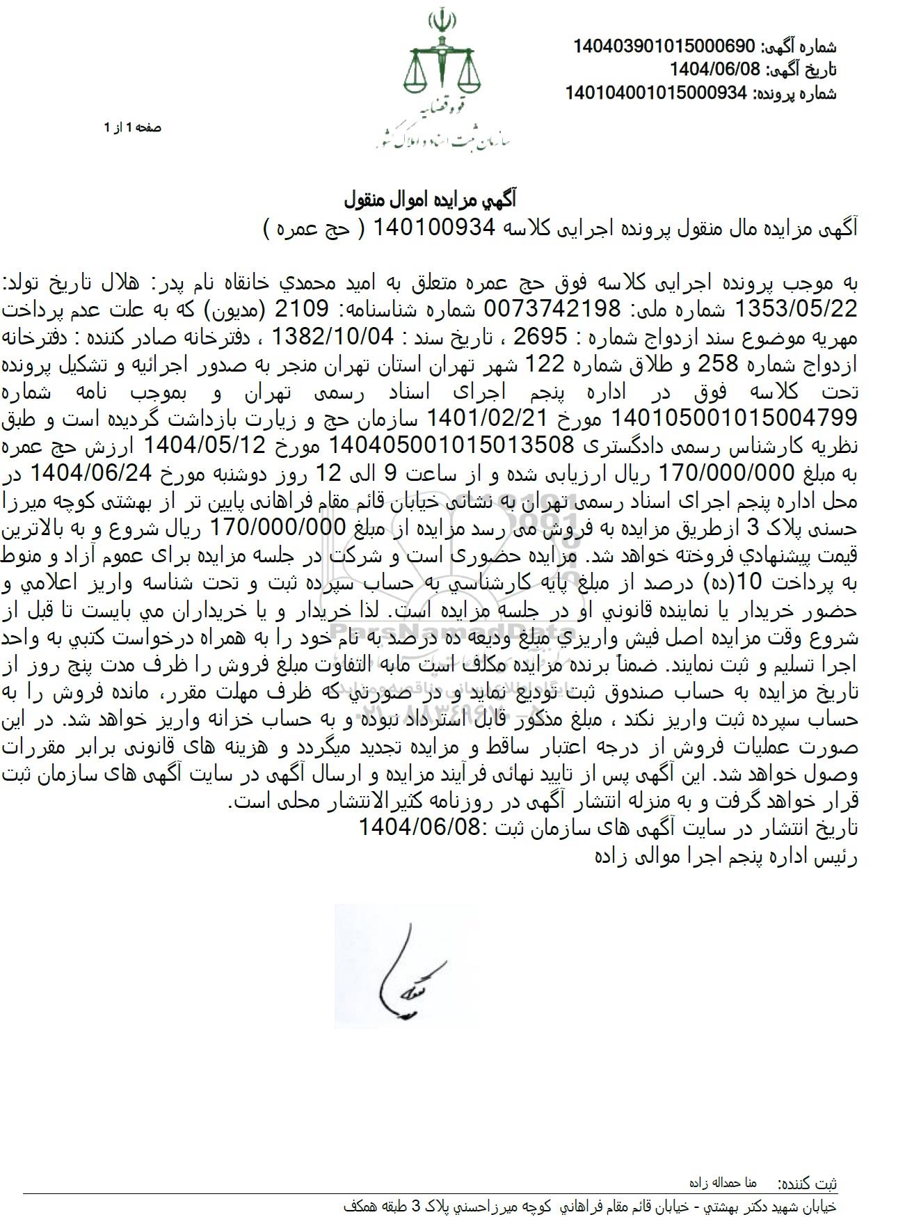 تاریخ مزایده : 1404.6.24 از ساعت 9 الی 12 روز دوشنبه