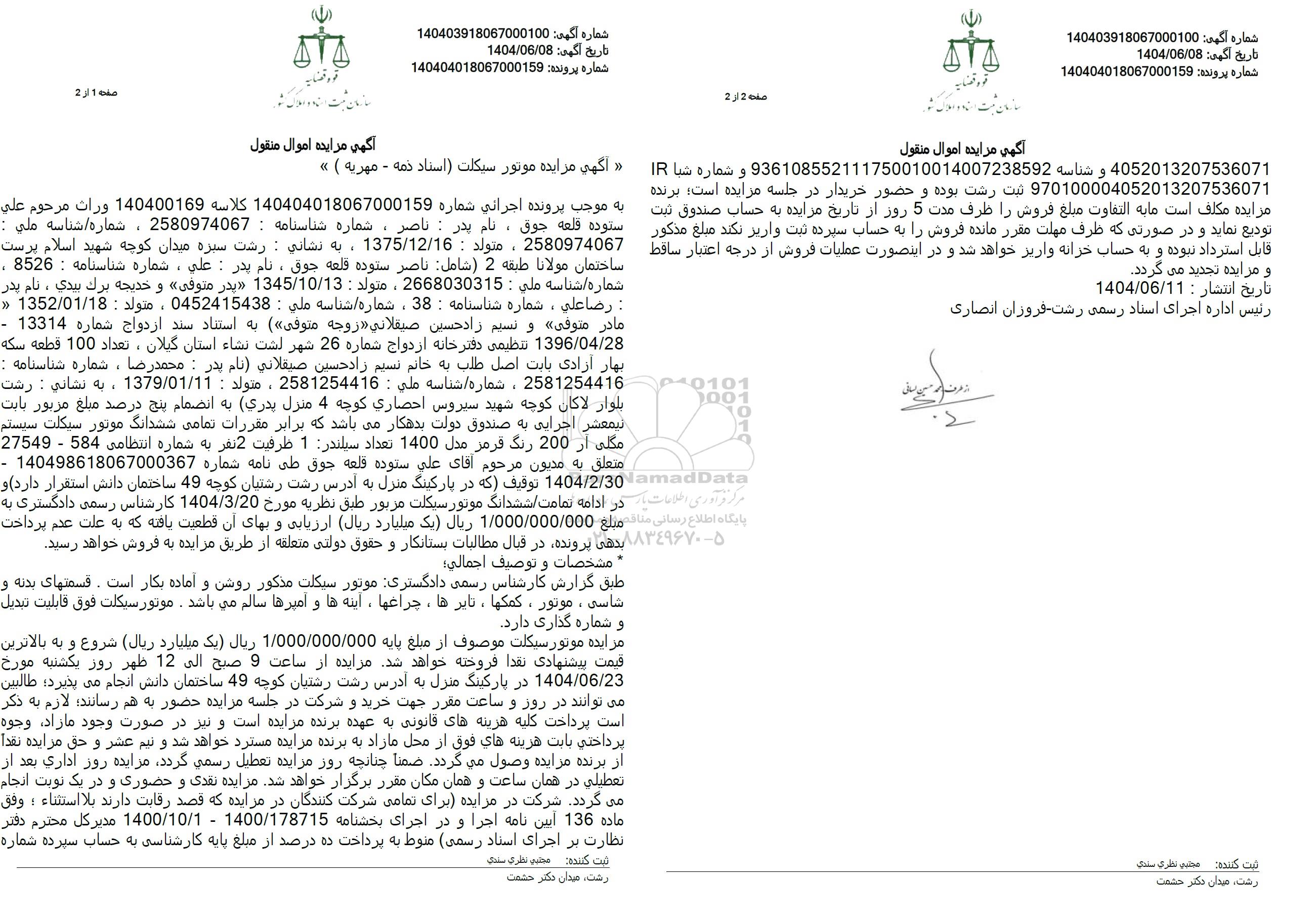 مکان برگزاری اموال واگذاری استانهای گیلان و دستهبندیهای مربوط به این حراجی موتور سیکلت میباشد.
