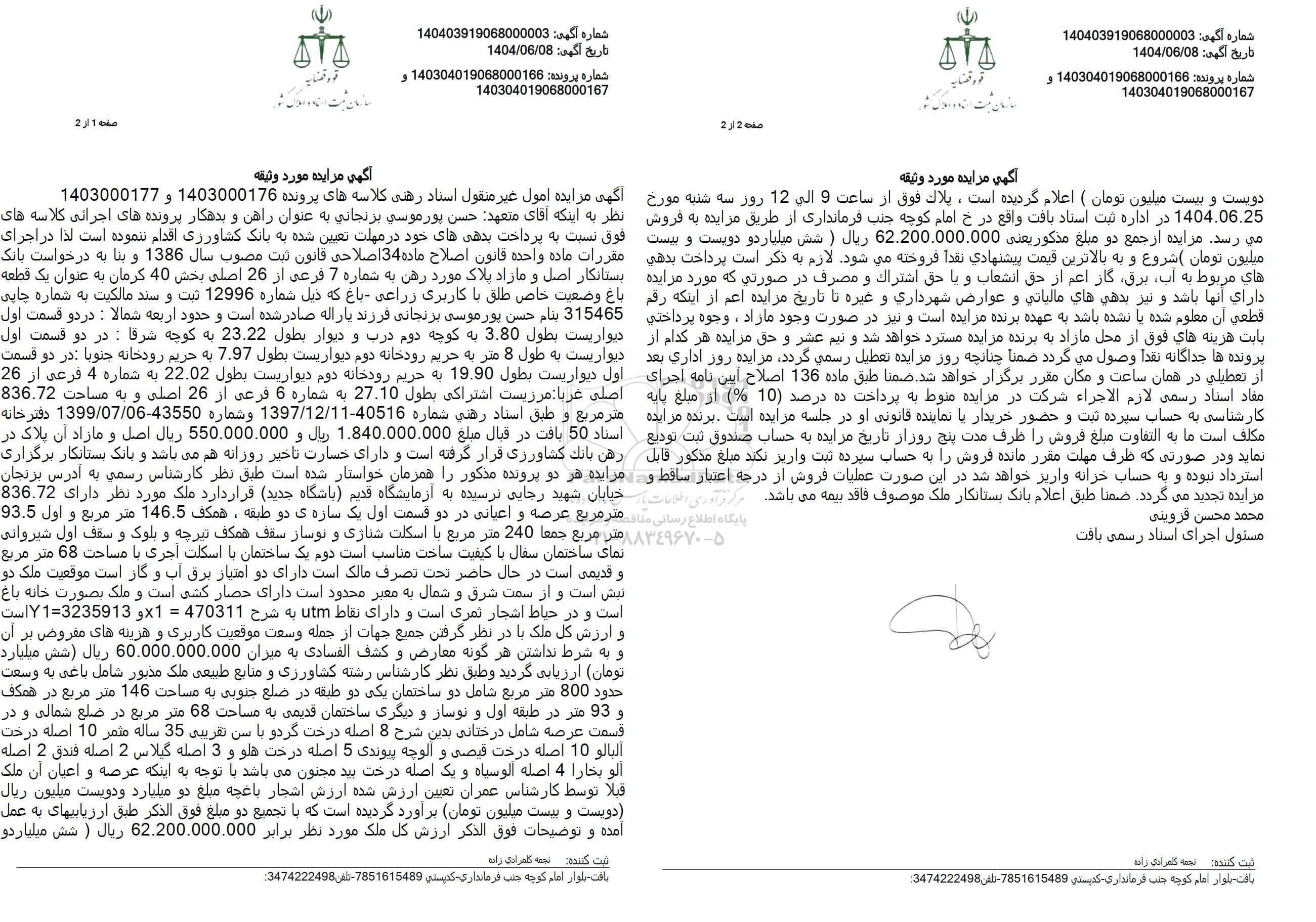 مزایده فروش یک قطعه باغ با کاربری زراعی - باغ , مزایده فروش یک قطعه باغ با کاربری زراعی - باغ