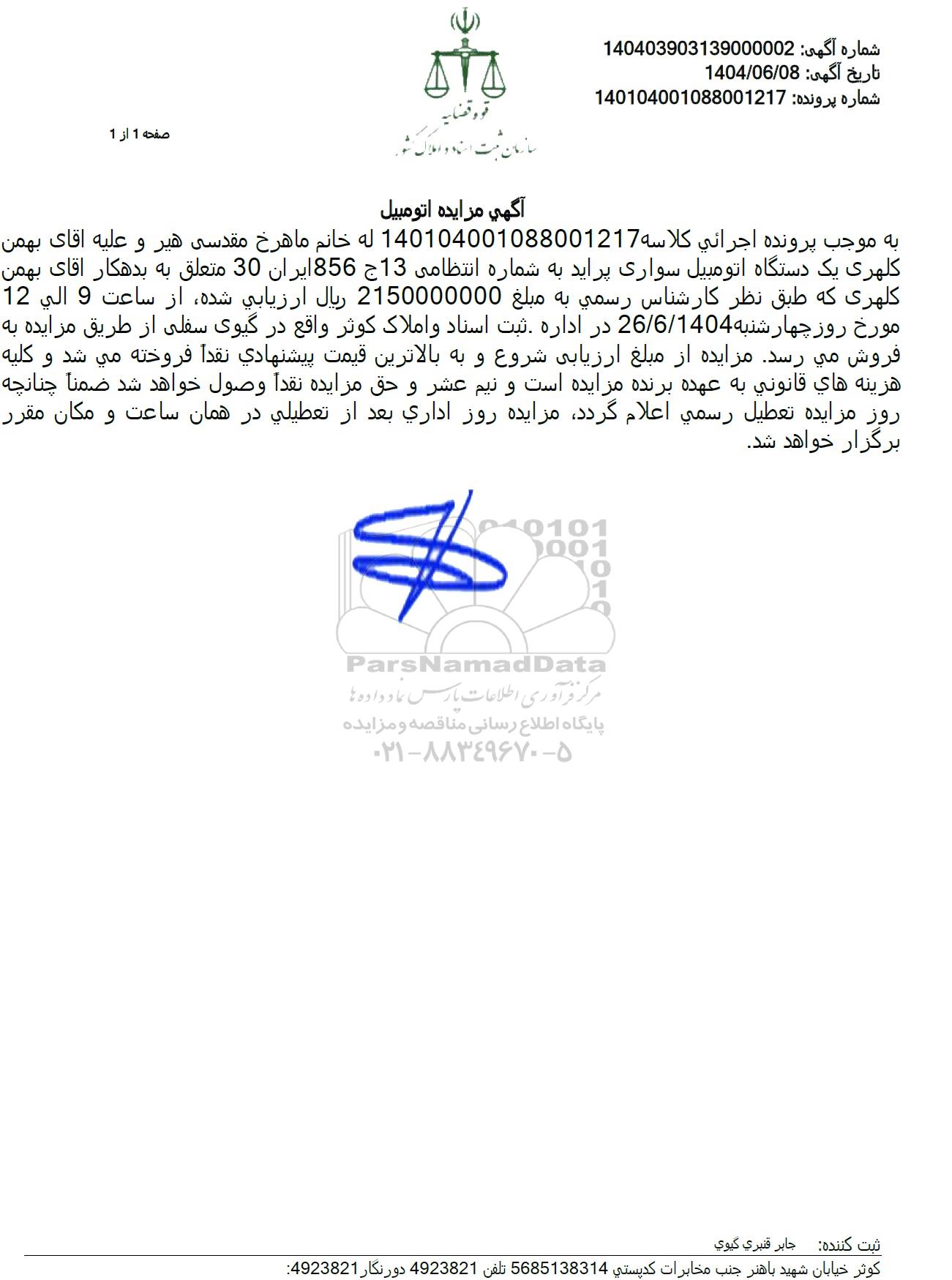 شماره آگهی:  140403903139000002