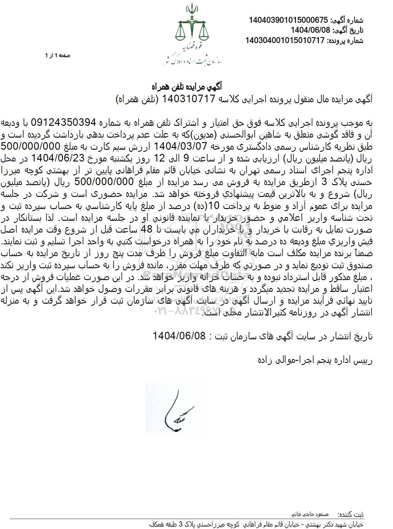 شماره آگهی  1404039010150000675