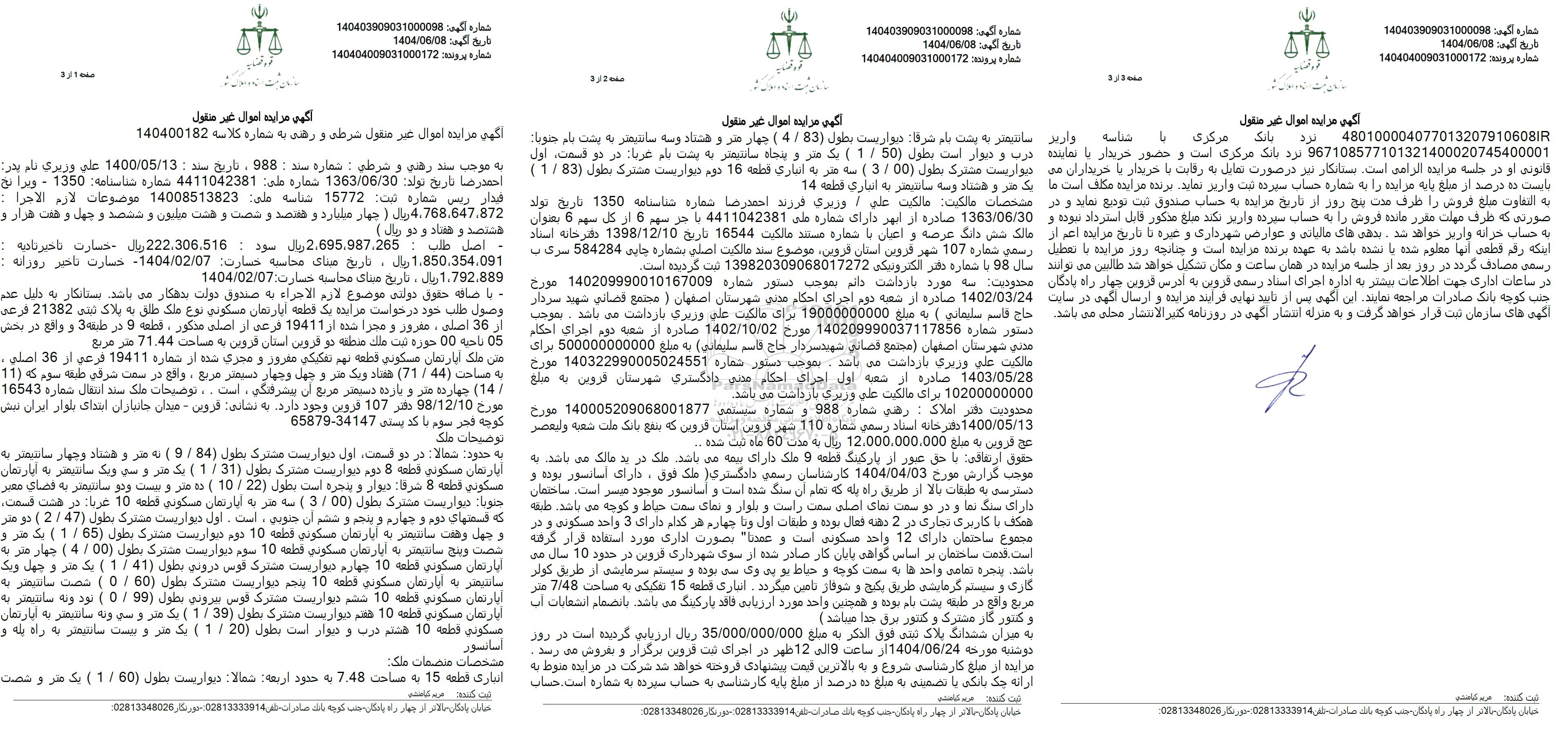 شماره آگهی: 140403909031000098
