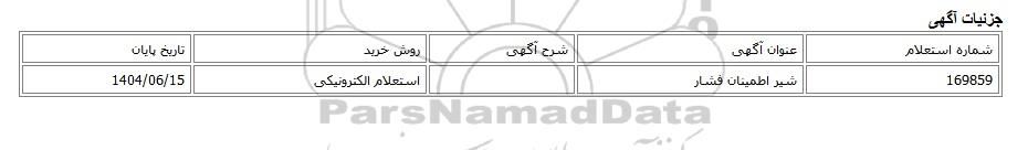 169859شیر اطمینان فشاراستعلام الکترونیکی1404/06/15