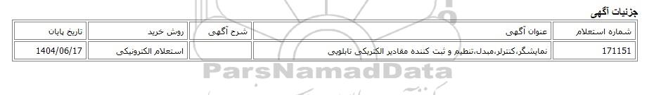 استعلام الکترونیکی نمایشگرکنترلرمبدلتنطیم و ثبت کننده مقادیر الکتریکی تابلویی, استعلام الکترونیکی، نمایشگر،کنترلر،مبدل،تنطیم و ثبت کننده مقادیر الکتریکی تابلویی