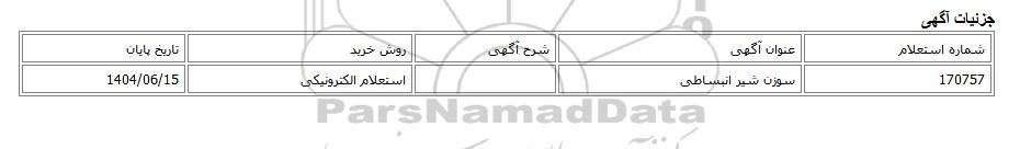 | 170757 | سوزن شیر انبساطی | استعلام الکترونیکی | 1404/06/15 |