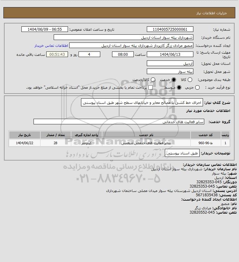 شرح کلی نیاز: اجرای خط کشی با مصالح معابر و خیابانهای سطح شهر طبق اسناد پیوستی