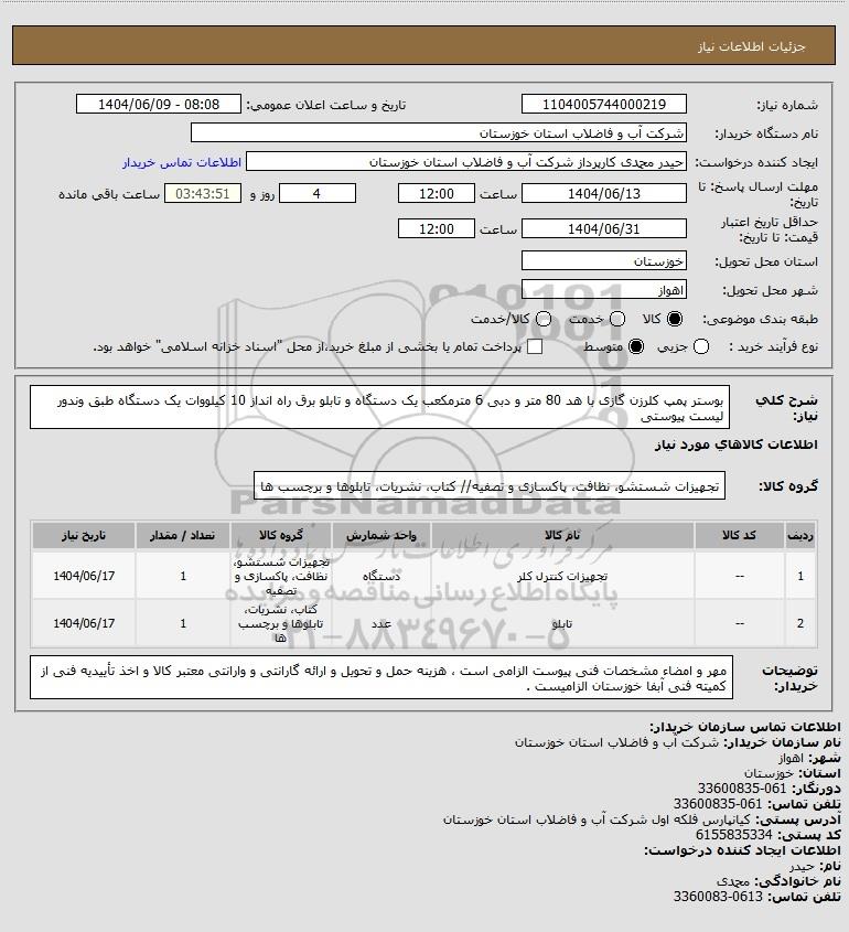 نام دستگاه خریدار:شرکت آب و فاضلاب استان خوزستان