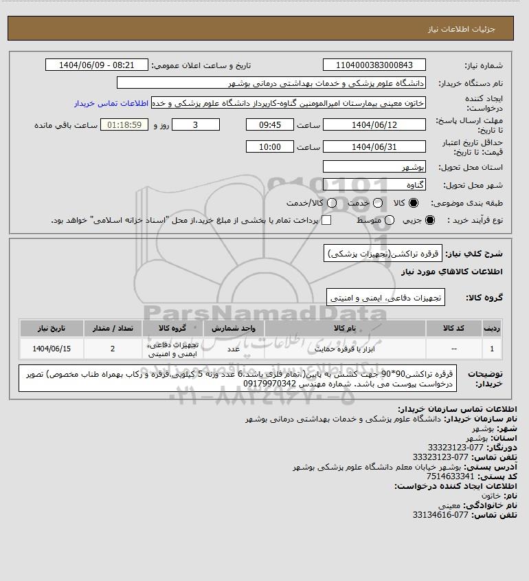 نام دستگاه خریدار:دانشگاه علوم پزشکی و خدمات بهداشتی درمانی بوشهر