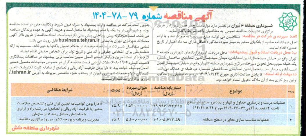 آگهی مناقصه شماره 79 - 78-1404