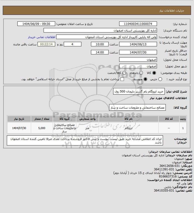 شرح کلی نیاز: خرید ایزوگام بام گستر دلیجان 500 رول