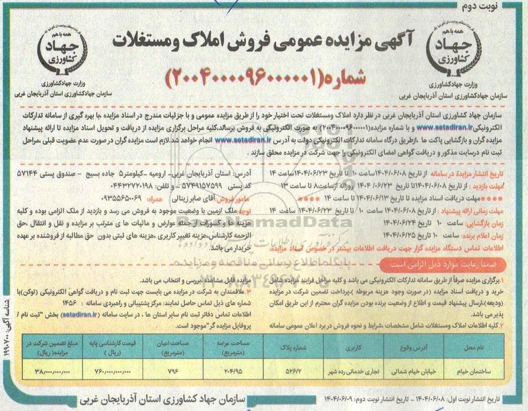 آگهی مزایده عمومی فروش املاک و مستغلات شماره  2004000096000001 - نوبت دوم؟