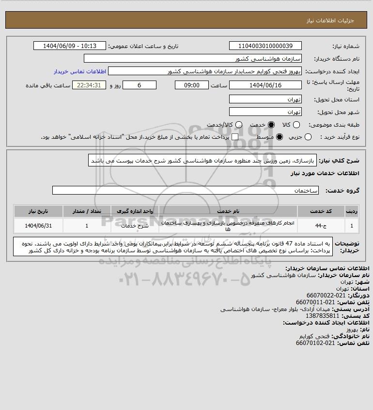 شرح کلی نیاز: بازسازی، زمین ورزش چند منظوره سازمان هواشناسی کشور