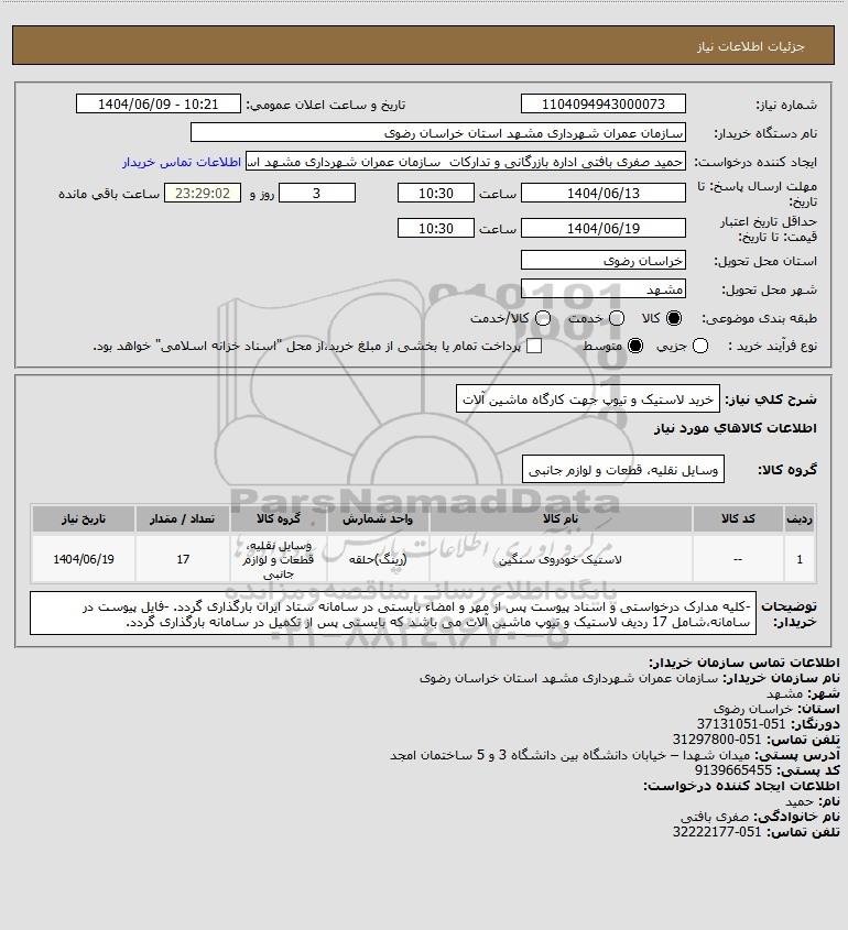 نام دستگاه خریدار:سازمان عمران شهرداری مشهد استان خراسان رضوی