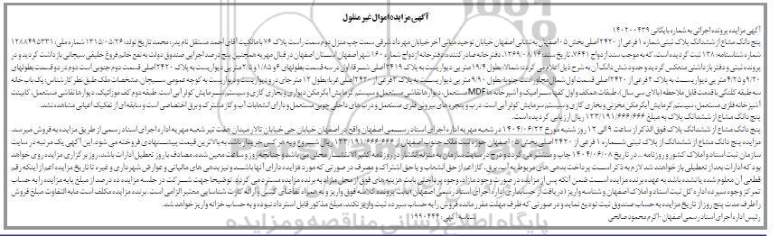 ششدانگ پلاک ثبتی شماره 1 فرعی از 2420 اصلی پخش 05 اصفهان به ارزش 123.191.666.666 ریال