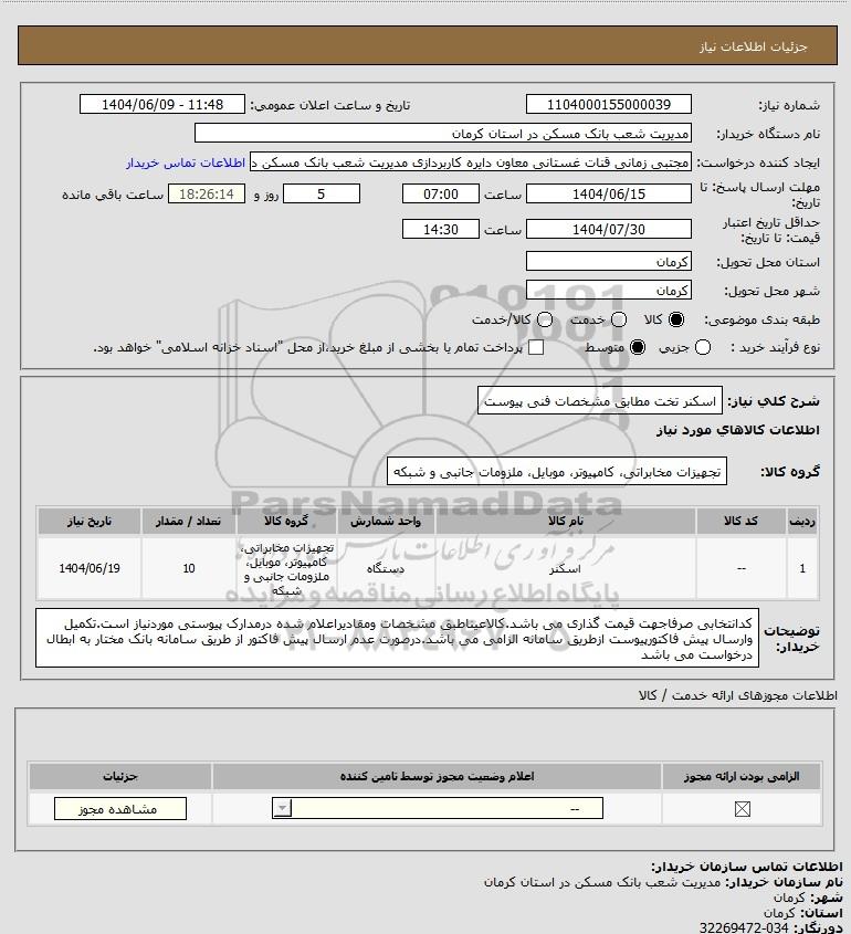 نام دستگاه خریدار:مدیریت شعب بانک مسکن در استان کرمان