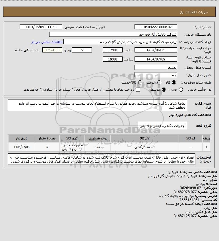 نام دستگاه خریدار:شرکت پالایش گاز فجر جم