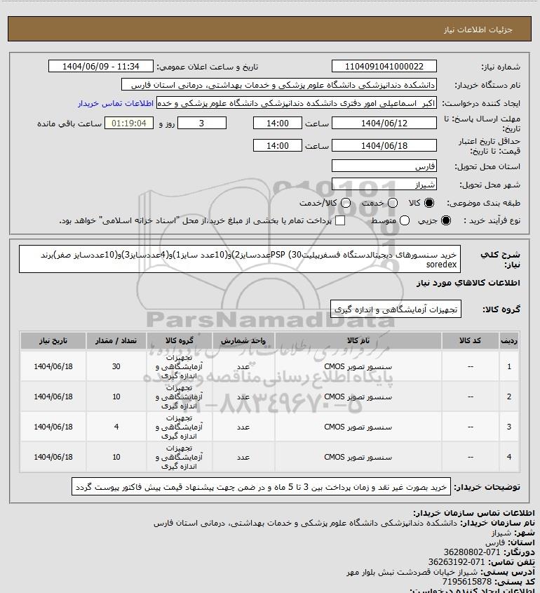 شرح کلی نیاز: خرید سنسورهای دیجیتالدستگاه فسفرپیلیتPSP (30عددسایز2)و(10عدد سایز1)و(4عددسایز3)و(10عددسایز صفر)برند soredex