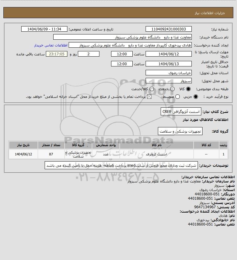نام دستگاه خریدار:معاونت غذا و دارو دانشگاه علوم پزشکی سبزوار