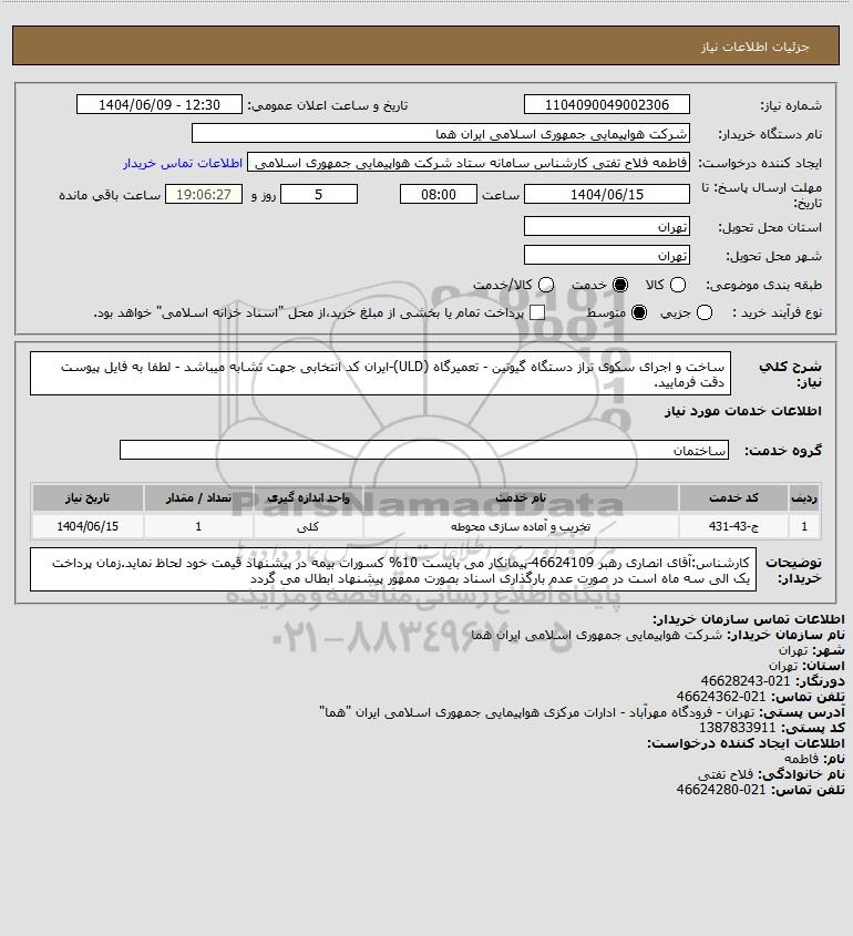 استعلام ساخت و اجرای سکوی تراز دستگاه گیوتین - تعمیرگاه (ULD)-ایران کد انتخابی جهت تشابه میباشد - لطفا به فایل پیوست دقت فرمایید., استعلام ساخت و اجرای سکوی تراز دستگاه گیوتین - تعمیرگاه (ULD)-ایران کد انتخابی جهت تشابه میباشد - لطفا به فایل پیوست دقت فرمایید.