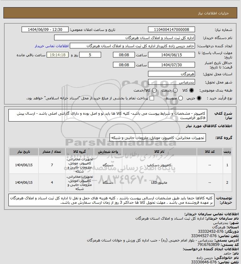 نام دستگاه خریدار:اداره کل ثبت اسناد و املاک استان هرمزگان