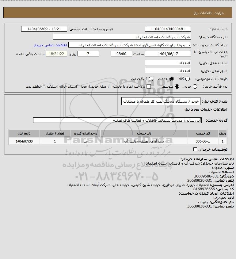 نام دستگاه خریدار:شرکت آب و فاضلاب استان اصفهان