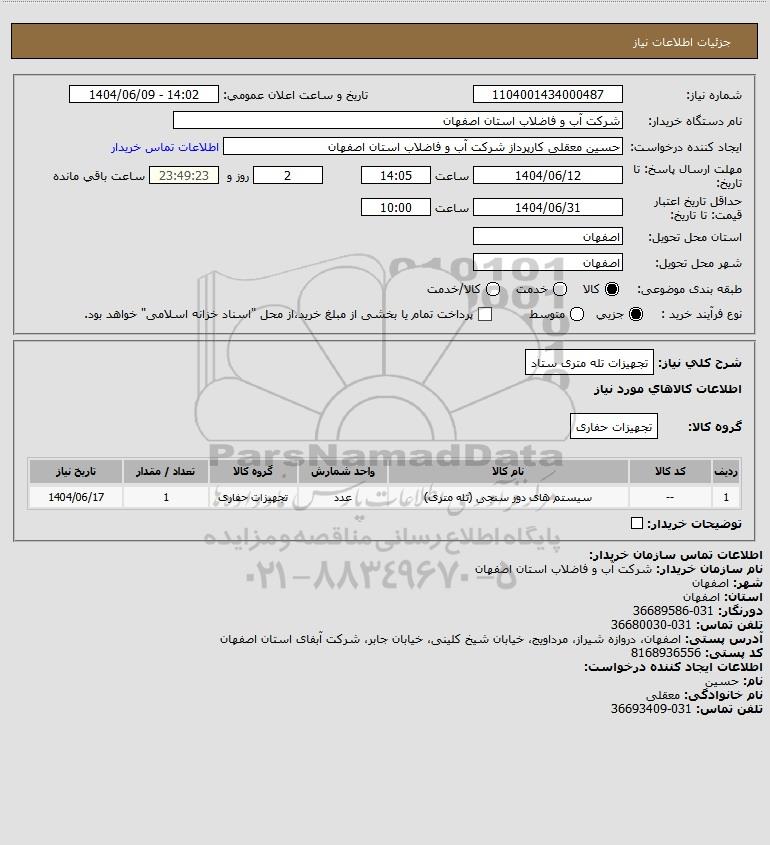 نام دستگاه خریدار:شرکت آب و فاضلاب استان اصفهان
