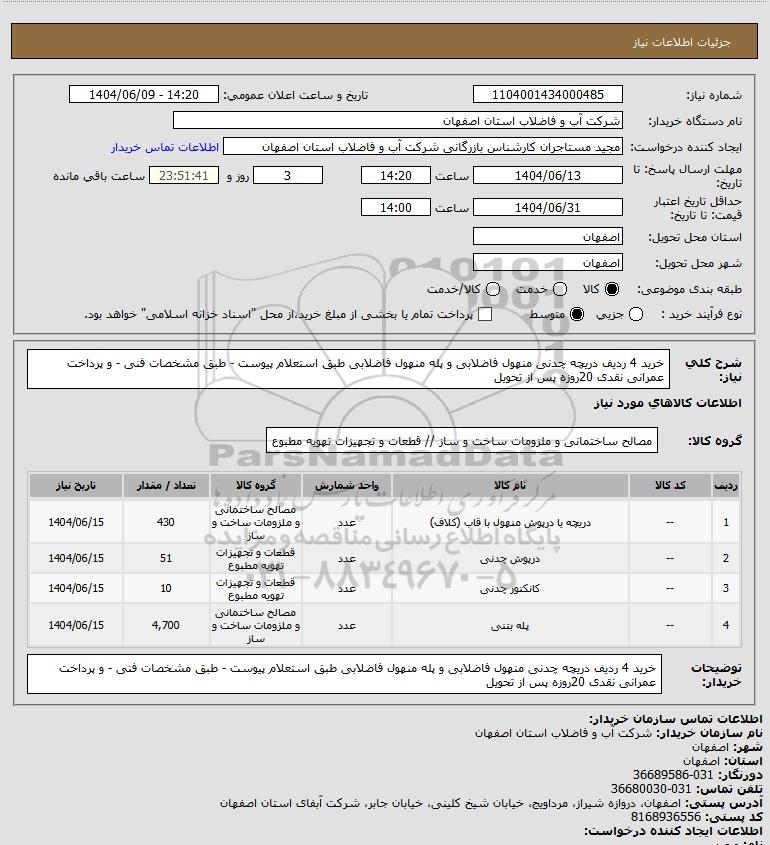 نام دستگاه خریدار:شرکت آب و فاضلاب استان اصفهان