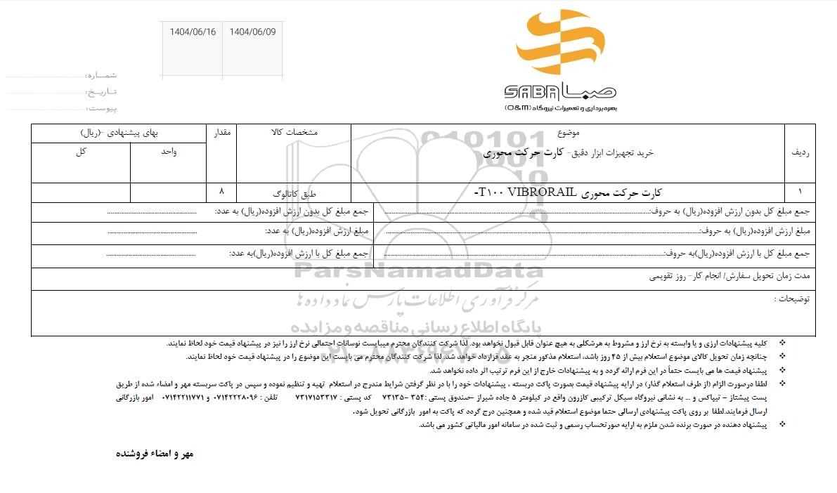 استعلام خرید تجهیزات ابزار دقیق - کارت حرکت محوری از کلیه افراد متخصص و شرکتها واجد شرایط دعوت به عمل میآید در مناقصه با کد خبرگزاری پارس نماد: 9483347 شرکت نمایند.