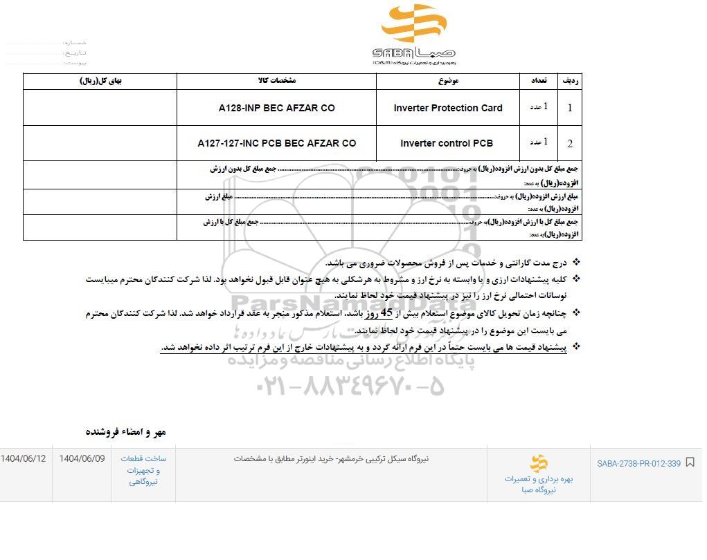 | 1 | 1 عدد | Inverter Protection Card | A128-INP BEC AFZAR CO |