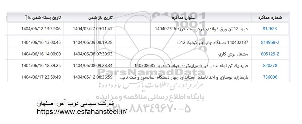 812623 | خرید 12 تن ورق فولادی - درخواست خرید 140402726 | 1404.06.12 |