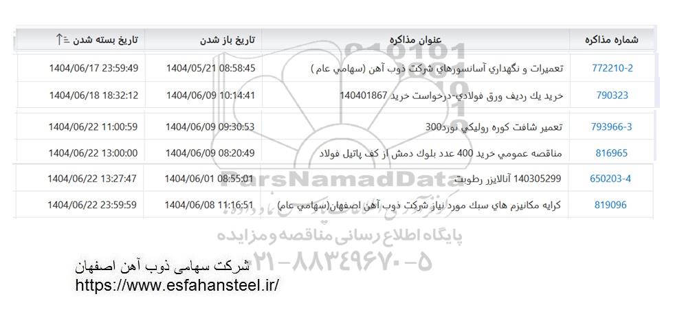772210-2 | تعمیرات و نگهداری آسانسورهای شرکت ذوب اهن اصفهان (سهامی عام) | 1404.6.17 |