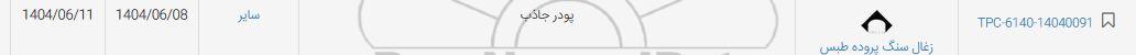 TPC-6140-14040091 | زغال سنگ پرورده طبس | پودر جاذب | سایر | 1404.6.8 | 1404.6.11 |