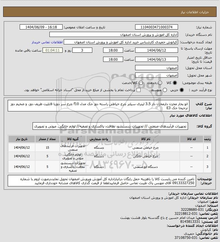 نام دستگاه خریدار:اداره کل اموزش و پرورش استان اصفهان