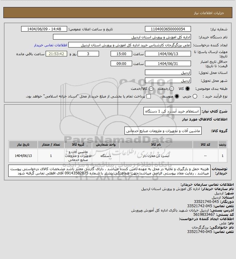نام دستگاه خریدار:اداره کل اموزش و پرورش استان اردبیل
