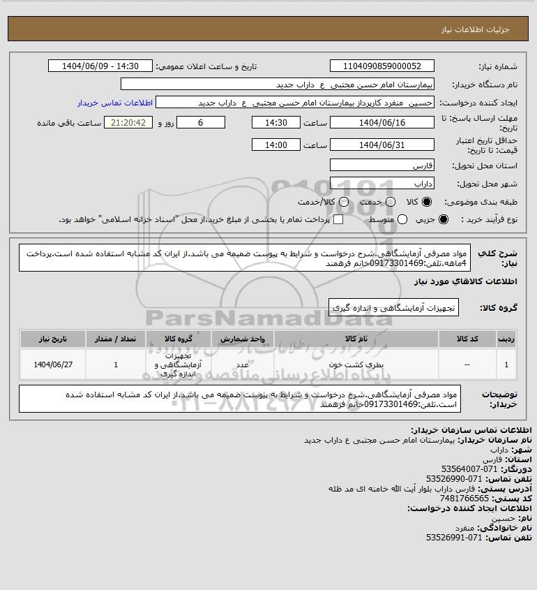 نام دستگاه خریدار:بیمارستان امام حسن مجتبی ع داراب جدید