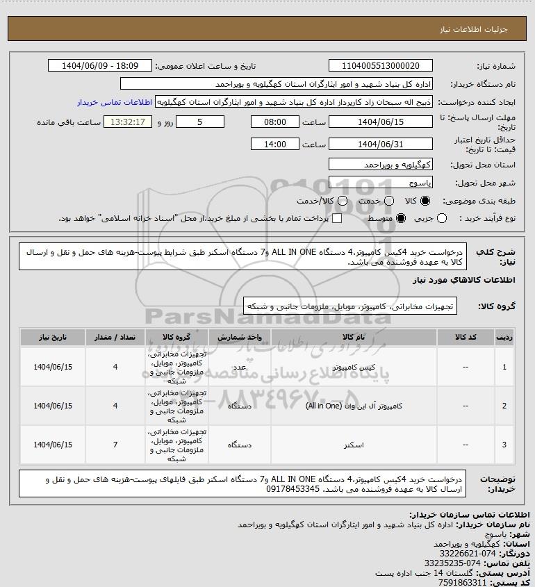 نام دستگاه خریدار:اداره کل بنیاد شهید و امور ایثارگران استان کهگیلویه و بویراحمد