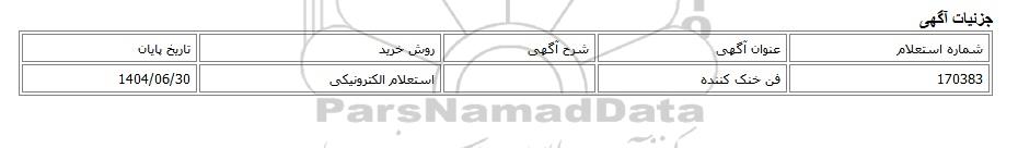 | 170383 | فن خنک کننده | استعلام الکترونیکی | 1404/06/30 |