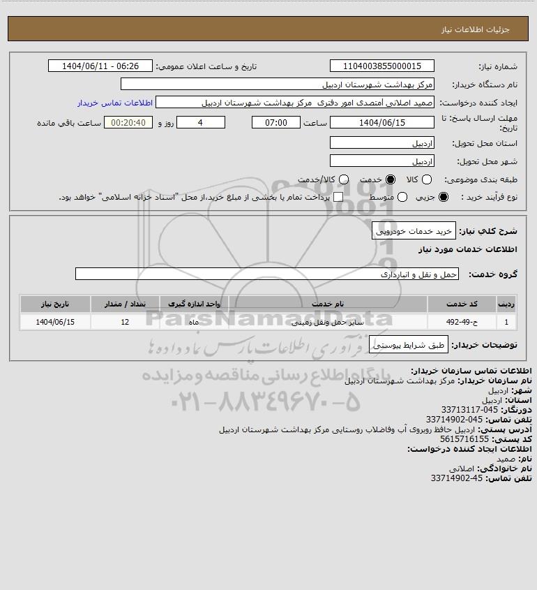 نام دستگاه خریدار:مرکز بهداشت شهرستان اردبیل