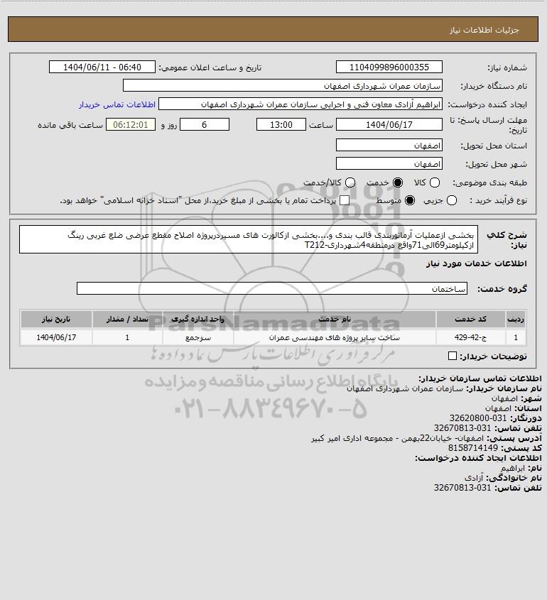 نام دستگاه خریدار:سازمان عمران شهرداری اصفهان