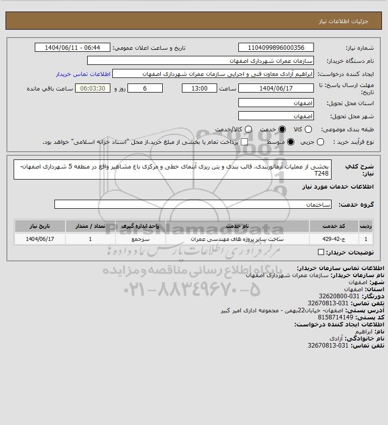 نام دستگاه خریدار:سازمان عمران شهرداری اصفهان