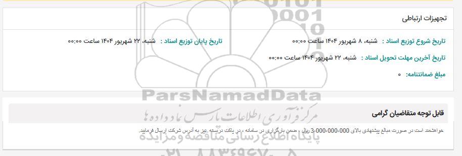 برای شرکت در مناقصه حتما از تصویر آگهی در سایت پارس نماد داده ها استفاده نمایید